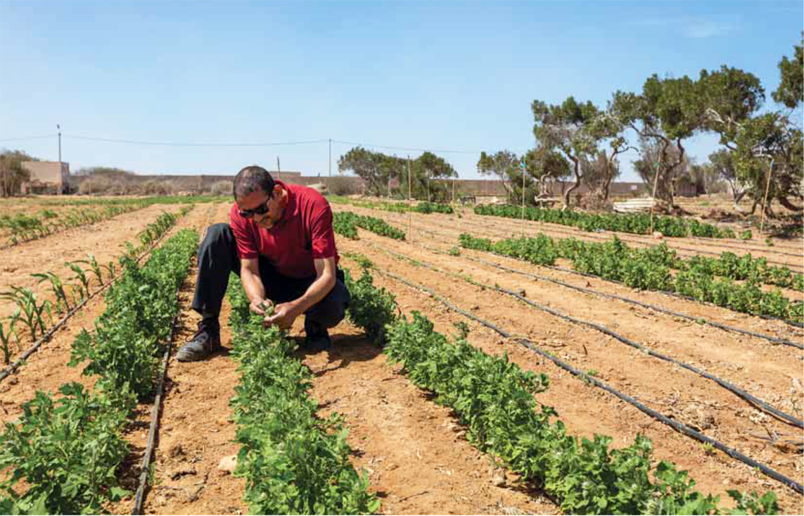 pour l’arganier, avec les retombées économiques importantes que cela implique pour les populations locales. “L’arganier peut très bien être la solution à cette région à long terme”, fait valoir le directeur du programme agriculture et environnement de la Fondation Phosboucraâ. Le centre d’expérimentation grandeur nature de Foum El Oued s’appuie sur un laboratoire d’analyses dédié à la production de données scientifiques sur l’état du sol et de l’eau. Inauguré courant 2017 par la Fondation Phosboucraâ, en partenariat avec l’INRA et l’ICBA, il fournit aux agriculteurs des trois régions du sud les informations nécessaires pour les aider à adopter une fertilisation raisonnée des cultures. Mais il n’y a pas que la composante R&D qui compte aux yeux de la Fondation. Au-delà des modes de culture, il y a lieu de noter les efforts consentis en matière d’irrigation. Dans une région où la pluviométrie est peu abondante et aléatoire, et où les précipitations se concentrent entre novembre et février, avec plus de 80% du total pluviométrique, l’introduction de systèmes d’irrigation goutte à goutte a permis de répondre au défi de la rareté des ressources hydriques.