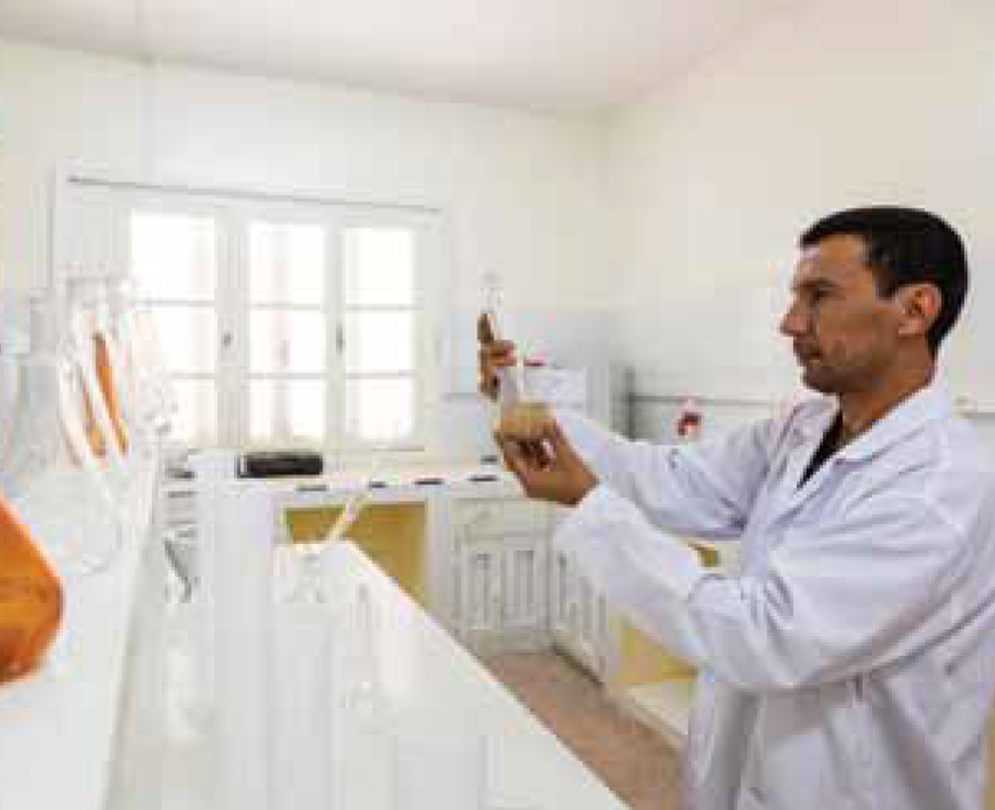 Ce n’est pas non plus par pur hasard que la commune de Foum El Oued est résolument portée sur la recherche. Cette ambition s’inscrit préalablement dans la vision globale de l’OCP. Foum El Oued a pour principale vocation d’être une ville du savoir. Une ville qui invente, crée, innove, mais aussi une ville dans laquelle l’intelligence est mise au service de la création des conditions qui assurent le bien-être des citoyens. C’est tout l’objet de la Technopole Foum El Oued (voir encadré), qui accueillera à Laâyoune l’un des plus importants centres de recherche de l’Université Mohammed VI Polytechnique de Benguérir. Le centre abrite trois unités de recherche dans la biotechnologie, l’eau, l’environnement et les énergies renouve l a b le s . D e s fe r m e s expérimentales dédiées à la recherche agronomique sont également prévues. Et le champ d’intervention de la Fondation Phosboucraâ ne se cantonne pas à la recherche et l’accompagnement technique pour la gestion durable des sols. Consciente de la réalité locale, la Fondation a ainsi inscrit le volet social et solidaire parmi ses axes majeurs de développement. Plusieurs projets ont été mis en œuvre dans une logique d’accompagnement des acteurs locaux et des communautés qui s’activent dans le secteur primaire. C’est ainsi que deux crèches de la commune de Foum El Oued ont été réhabilitées, bénéficiant à 120 enfants. “L’éducation s’érige en priorité pour la Fondation, compte tenu de l’apport de l’éducation pour le développement des régions du sud”, témoigne Abderrahmane Lyamani. En ce sens, les programmes mis en place sont destinés à traduire sur le terrain les préoccupations des populations locales et reflètent les pistes de réflexion partagées au sein de la communauté de l’éducation des régions du sud. Autre bénéficiaire du projet de développement agricole Foum El Oued, la coopérative Halib Sakia El Hamra. Créée en 1996, elle est l’un des grands donneurs d’ordre de la région. D’abord de par son rôle socioéconomique, puisqu’il s’agit aujourd’hui d’un bassin d’emploi pour près de 1000 personnes (direct et indirect), mais aussi vu sa place dans la chaîne de distribution du lait frais. En l’état actuel, la coopérative produit jusqu’à 30 000 litres par jour contre 300 litres lors de son lancement. Grâce à un circuit de distribution bien rodé, Halib Sakia El Hamra dessert 5000 points de vente dans les 3 régions du sud. “Nous répondons à 60% de la demande de la région de Laâyoune, Sakia El Hamra et 20% pour chacune des deux régions, Guelmim-Oued Noun et Dakhla-Oued Eddahab”, affiche fièrement Dahan Soubai, le président de la coopérative. Des prouesses rendues possibles notamment grâce au soutien de la Fondation à hauteur de 13 millions de dirhams. Et la coopérative n’a pas encore atteint sa vitesse de croisière, puisqu’elle compte élargir sa gamme de produits dérivés et commercialiser prochainement des yaourts. Autant d’initiatives visant à favoriser un ancrage de nouvelles activités économiques génératrices de revenus, dans la lignée des orientations royales sur la nécessité de faire émerger une classe moyenne agricole et favoriser l’emploi dans le milieu rural.